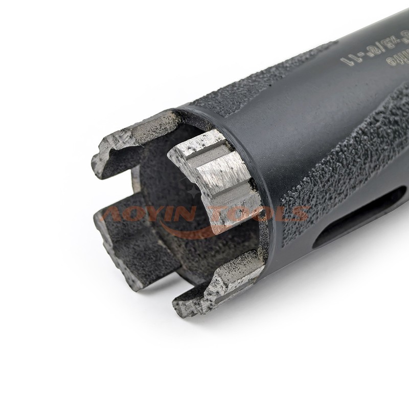 يُستخدم مثقاب الحفر التوربيني ذو النواة، المزود بحماية جانبية ملحومة بالتفريغ، على نطاق واسع في صناعة الحجر لعمليات الحفر. وهو مناسب للحفر الرطب والجاف لمختلف مستويات صلابة الحجر الطبيعي، بما في ذلك الجرانيت والرخام، بالإضافة إلى الحجر الصناعي. يُعد هذا المثقاب أساسيًا لصانعي ومُركّبي الحجر، وللمحترفين في مشاريع بناء وترميم الحجر.